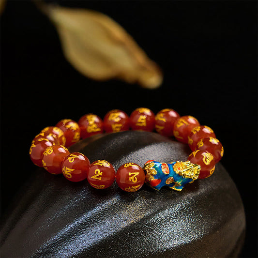 Buddha Stones Red Agate Color Change PiXiu Om Mani Padme Hum Calm Bracelet