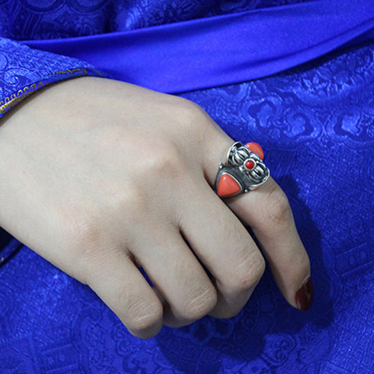 Lucky Dawn Embrace Turquoise Coral Sterling Silver Rings