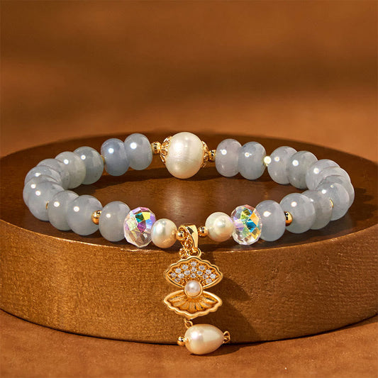 Buddha Stones Natural Aquamarine Pearl Shell Healing Bead Bracelet