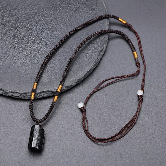 Buddha Stones Natural Black Tourmaline Positive Rope Necklace Pendant