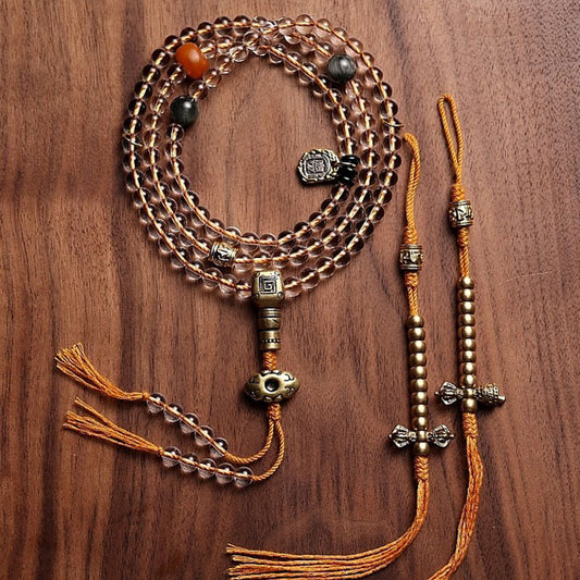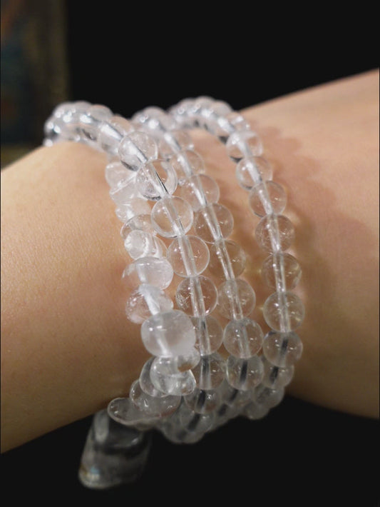 Soft Glow Clear Quartz 108 Mala Beads Necklace
