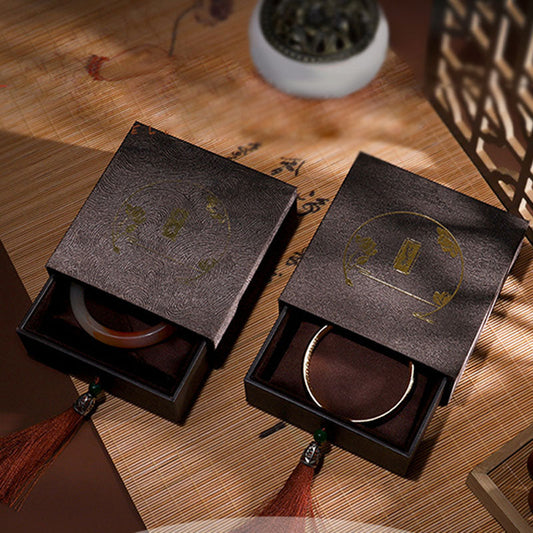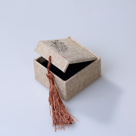 Buddha Stones Lotus Pattern Jewelry Storage Box Gift Box Tassels