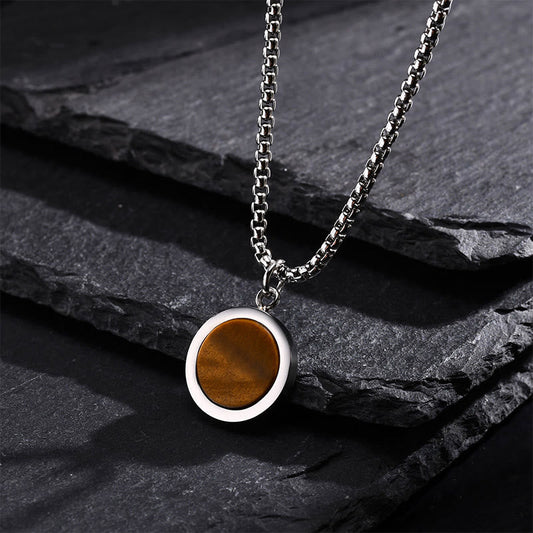 Buddha Stones Natural Stone Turquoise Tiger Eye Lazurite Malachite Titanium Steel Purification Necklace Pendant