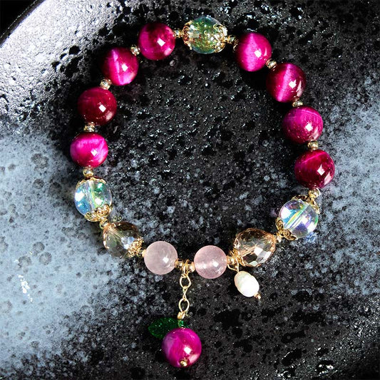 Buddha Stones Natural Red Tiger Eye Purple Tiger Eye Beads Green Leaf Protection Bracelet
