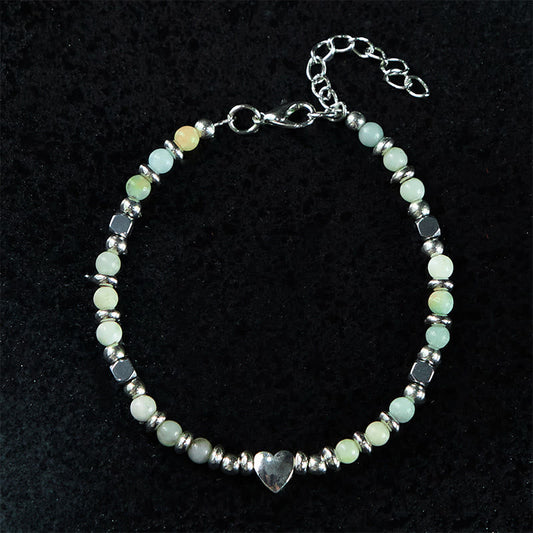Buddha Stones Natural Stone Amazonite Amethyst Lazurite Rose Quartz Heart Positive Balance Bracelet