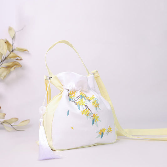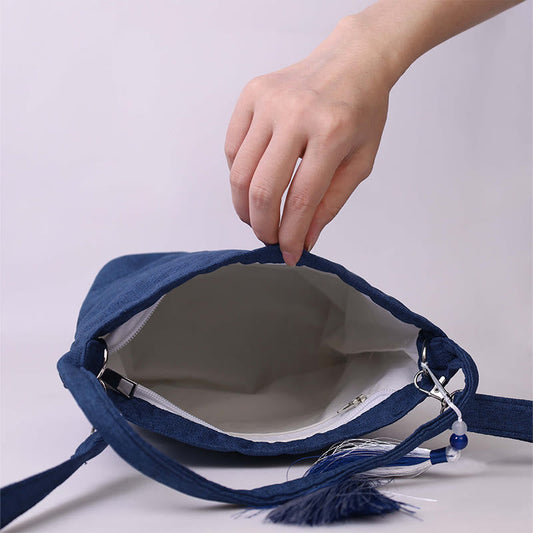 Buddha Stones Embroidery Wisteria Plum Lotus Cherry Blossom Cotton Linen Canvas Tote Crossbody Bag Shoulder Bag Handbag