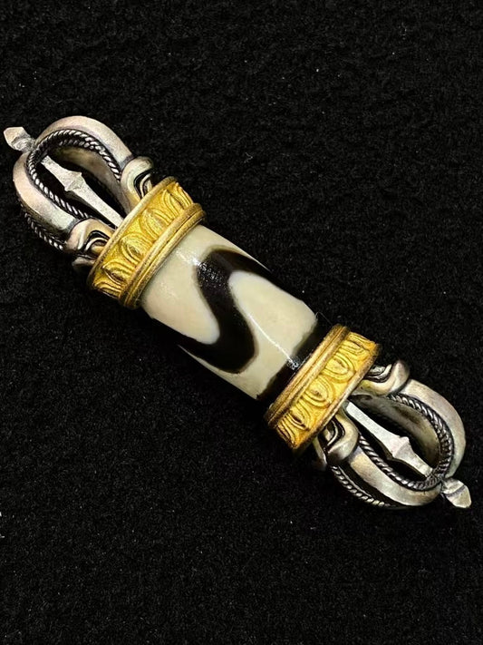 Protective Energy Three-Eyed Dzi Bead Bracelet Tibetan Vajra Silver Talisman