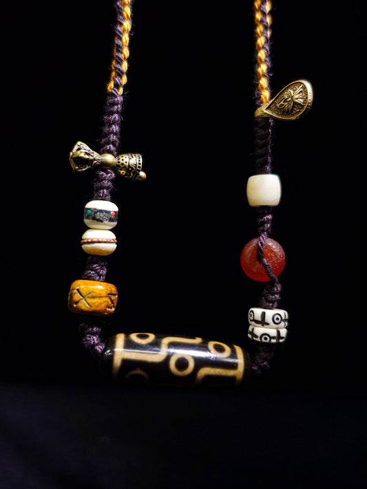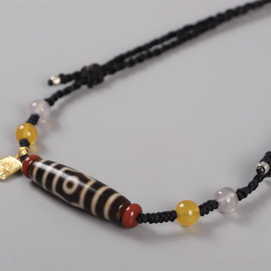 Awakening Three Eyes Dzi Beads Tibetan Necklace Natural agate chalcedony