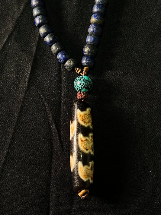 【Unique Item】 Lapis & Turquoise Tibetan Dzi Pendant Necklace