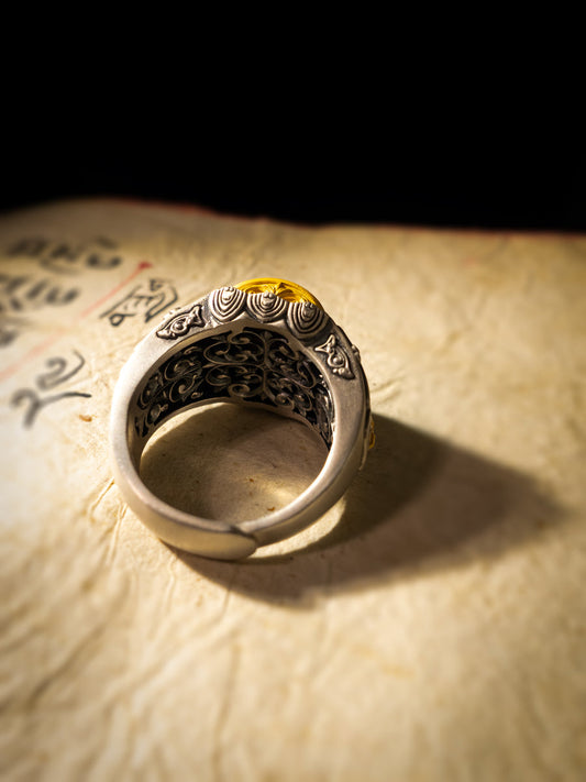 Eye of Protection Dzi Agate & 925 Silver Ring