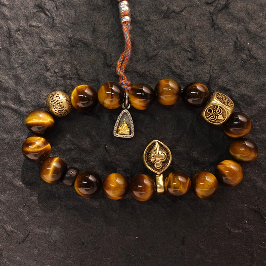 Wealth & Strength Tiger's Eye Bracelet with Gold Buddha Charm