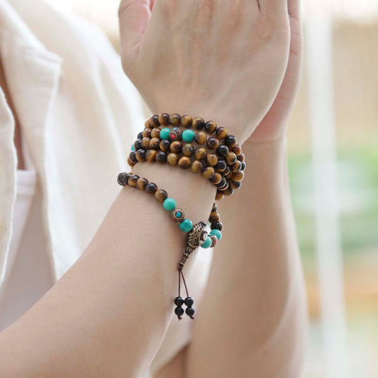 Buddha Stones 925 Sterling Silver Tiger's Eye Bodhi Seed Handmade Courage Bracelet