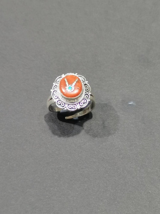 Sacred Coral & Turquoise Ring | Pure Silver Adjustable Design for Spiritual Strength and Harmony