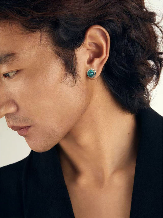 Emerald Wealth Triad – Turquoise Prosperity Energy Stud Earrings