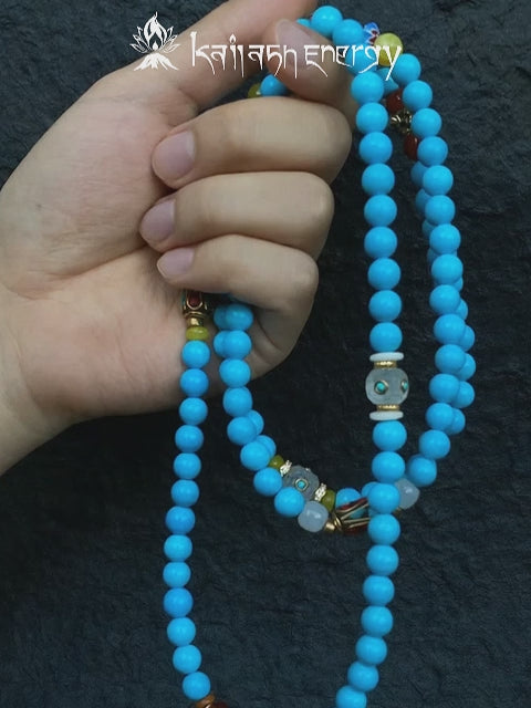 Turquoise Health Mala Necklace 108 Bead Meditation for Wellness