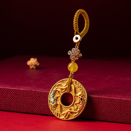 Buddha Stones Colorful Koi Fish Hollow Bell Wealth Luck Key Chain