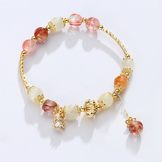 Buddha Stones Multicolored Rutilated Quartz Auspiciousness Zircon Flower Bracelet