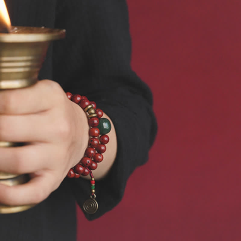 Buddha Stones Bodhi Seed Cyan Jade Copper Peace Luck Bracelet