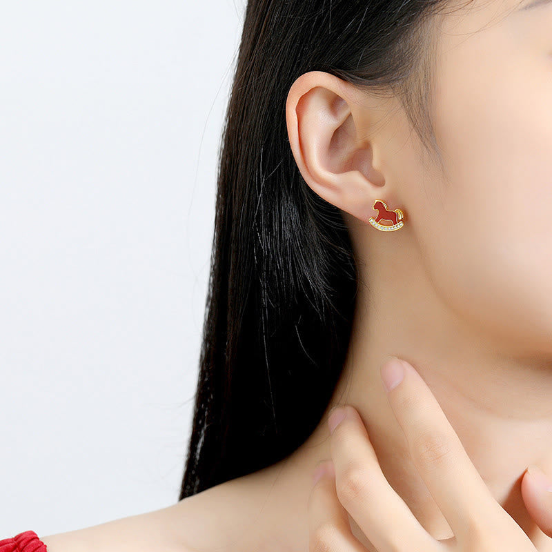 Buddha Stones 925 Sterling Silver Year Of The Horse Design Red Agate Confidence Earrings