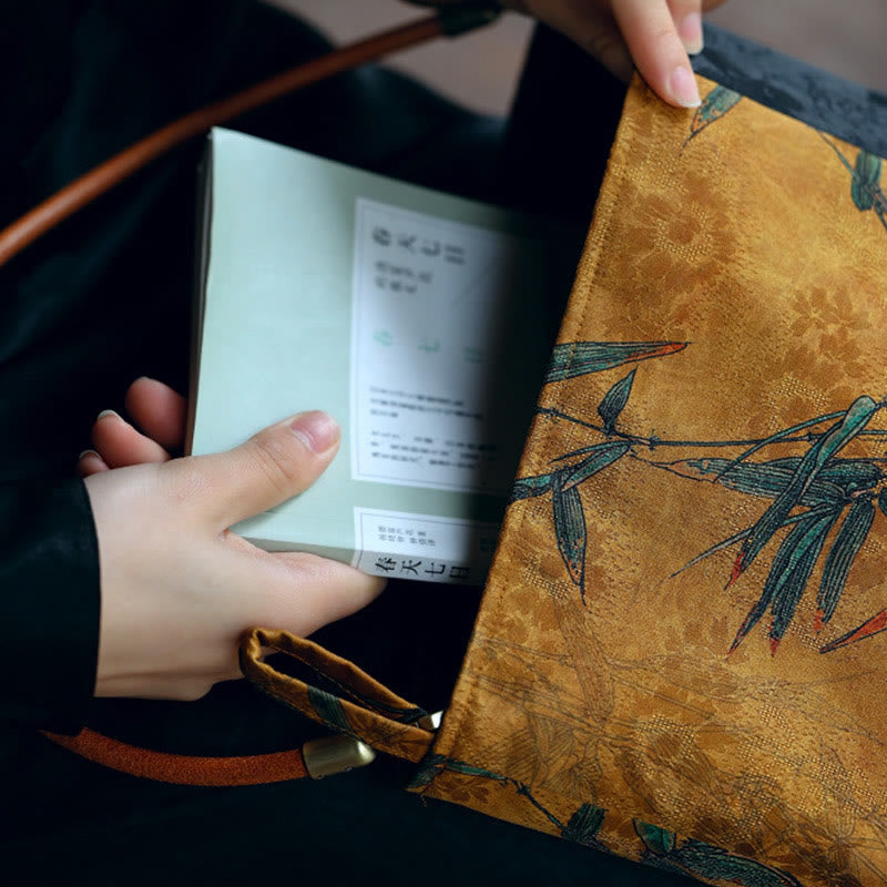 Buddha Stones Bamboo Leaves Flower Butterfly Persimmon Shoulder Bag Handbag