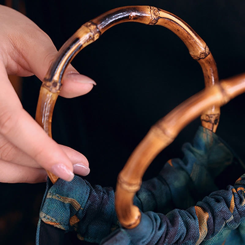 Buddha Stones Blue Green Bamboo Leaves Bamboo Handles Handbag