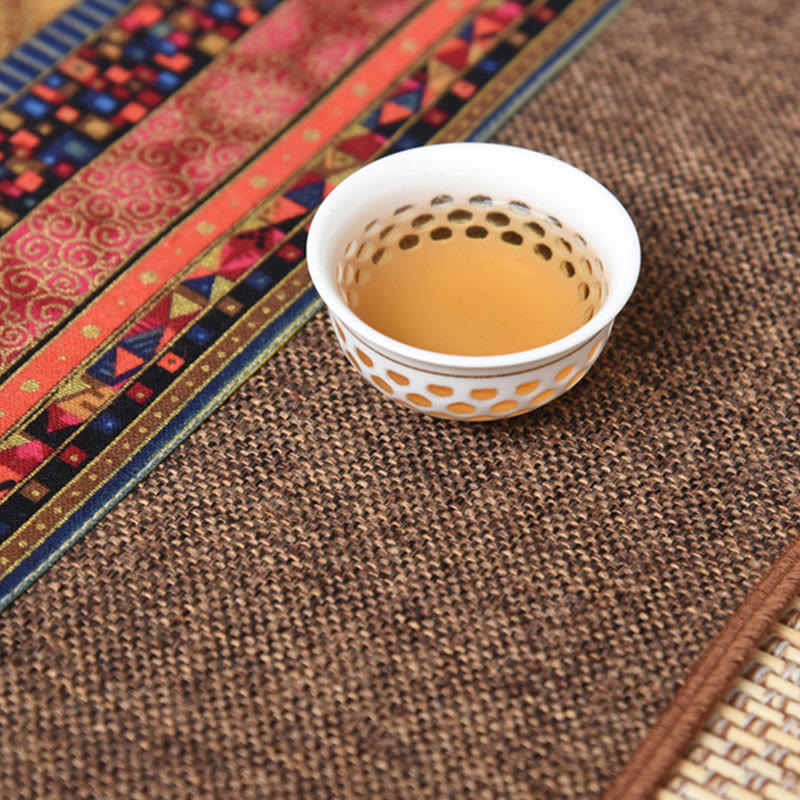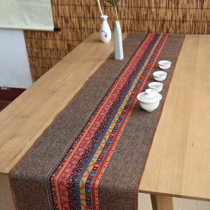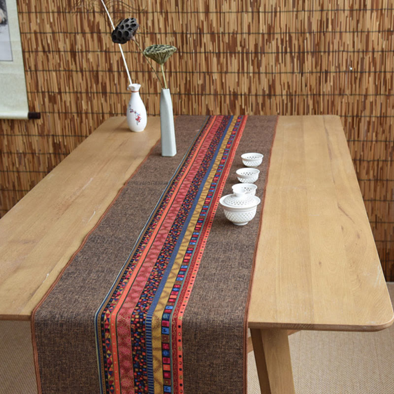 Buddha Stones Classic Chinese Style Lotus Koi Fish Flower Crane Calligraphy Enlightenment Cotton Linen Tassels Table Runner