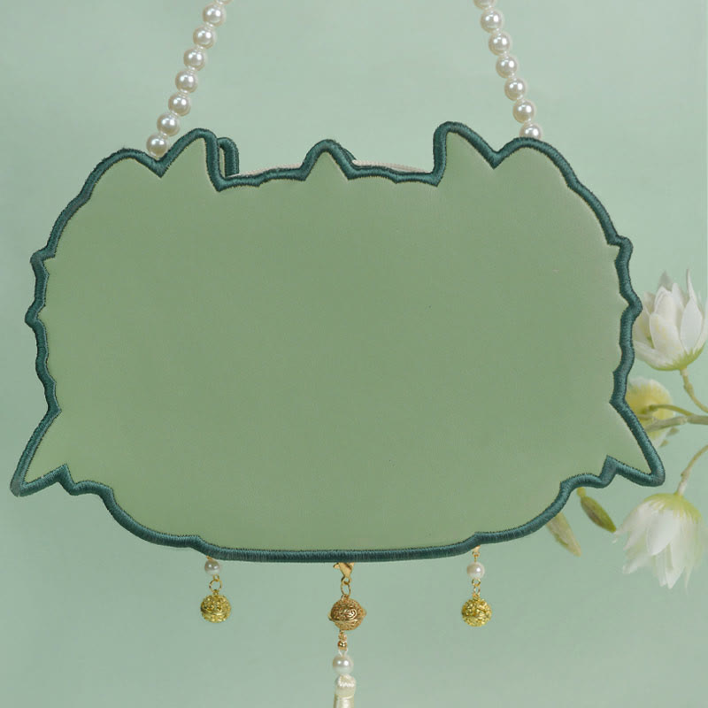 Buddha Stones Double-sided Mythical Beast Bai Ze Embroidery Pearl Chain Tassel Shoulder Bag Crossbody Bag