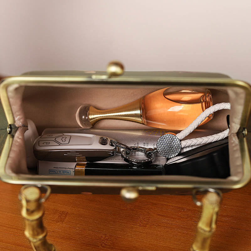 Buddha Stones Green Plants Mountains Bamboo Handle Metal Chain Crossbody Bag Handbags
