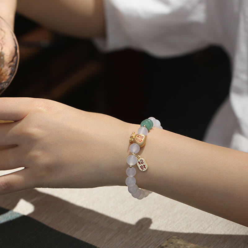 The Fu character designed on the bracelet symbolizes happiness. wealth. and health. which delivers a good sign for the this year. to show good wishes to the recipient.