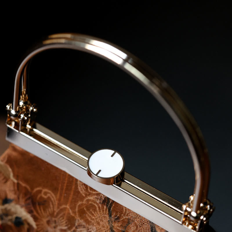 Painting of Lady of Guoguo on a Spring Outing handbag features an exquisite metal handle and a beautiful painting. This unique handbag captures the elegance and grace of traditional art. making it perfect for special occasions or daily use. The combination of classic artwork and modern design adds a touch of sophistication and cultural charm to your attire.๐Ÿ’•