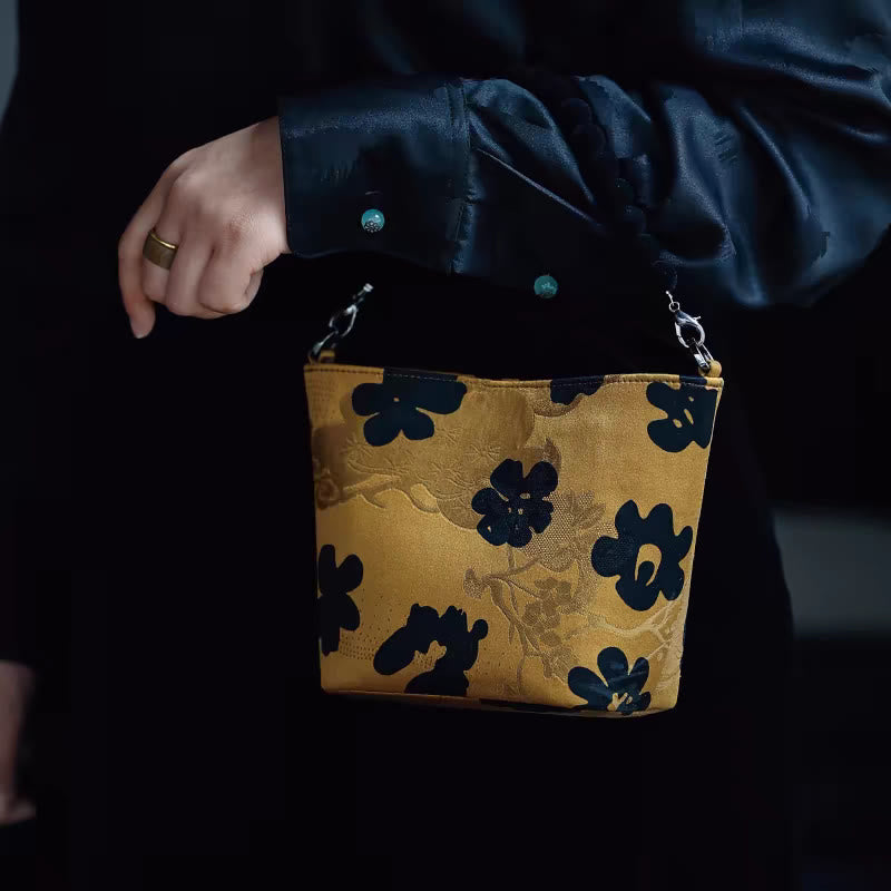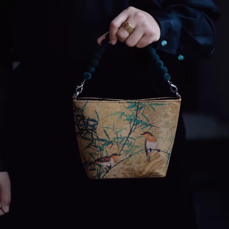 Buddha Stones Small Bamboo Leaves Butterfly Peony Flowers Magpie Metal Chain Crossbody Bag Shoulder Bag Handbag