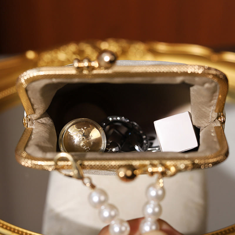 Buddha Stones Small Flowers Butterfly Embroidered Pearl Metal Chain Shoulder Bag Crossbody Handbag Cellphone Bag