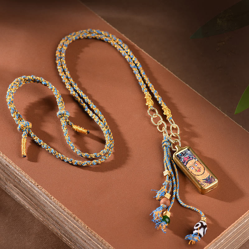 Buddha Stones Tibet God Of Wealth Titanium Steel Thangka Wealth Necklace Pendant
