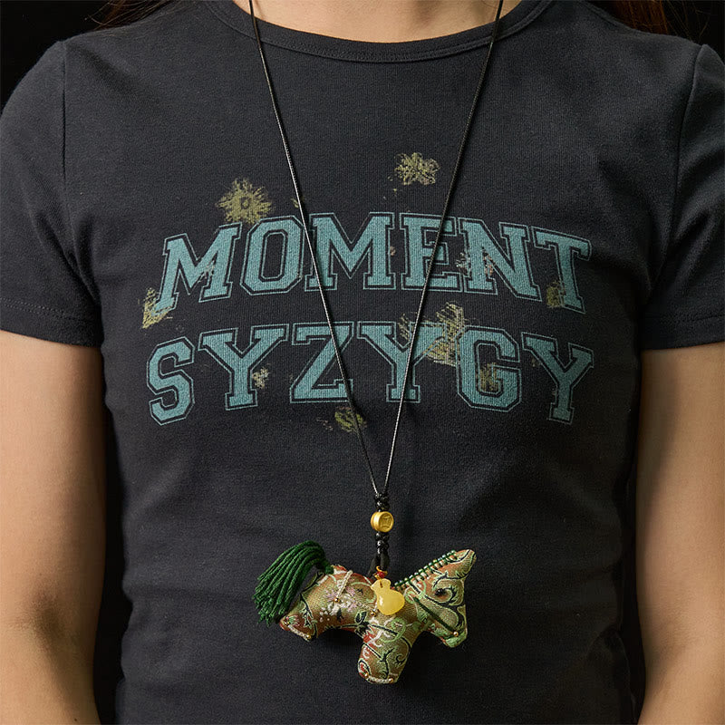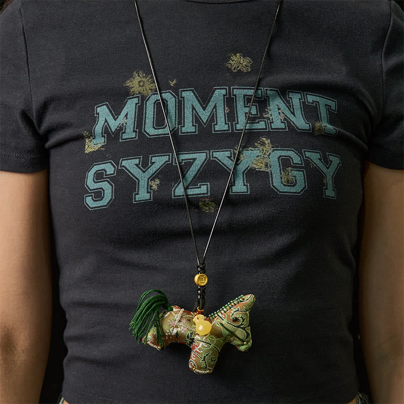 Buddha Stones Year of the Horse Shu Brocade Silk Curly Grass Pomegranate Pattern Hanging Decoration